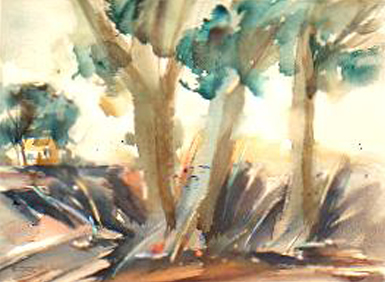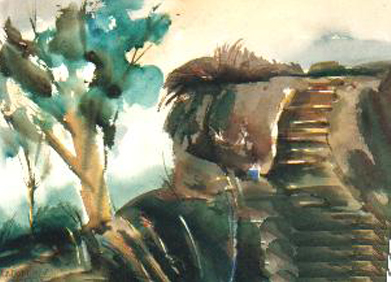 "LANDSCAPE I" 1992 #0881 14.5X10.5 WATERCOLOR |