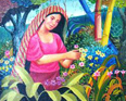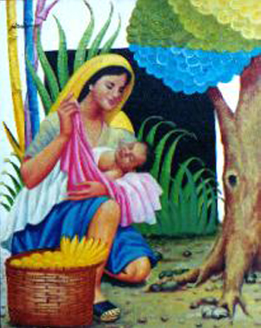excels in oil and his subjects depict the Filipina caring for her baby
