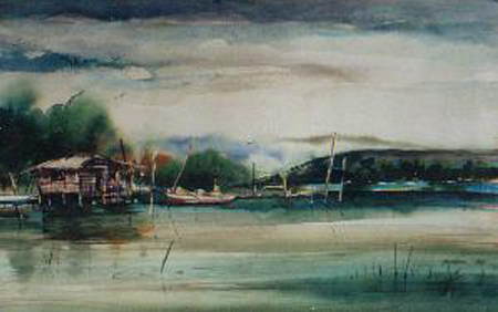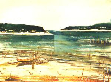 "SEASCAPE I" 1991 #0471 21X14 WATERCOLOR |