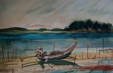 "SEASCAPE IV" 1991 #0474 17.25X10.75 WATERCOLOR |