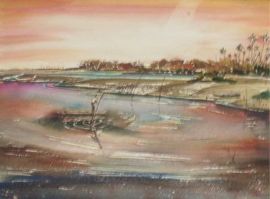 "SEASCAPE II" 1991 #0472 17.75X11.25 WATERCOLOR |